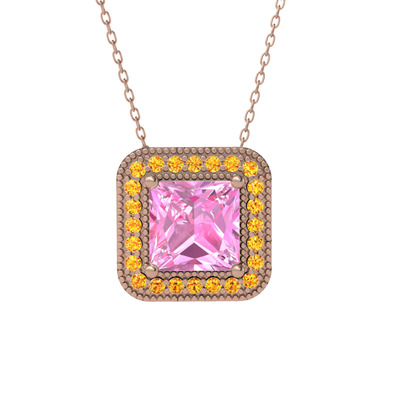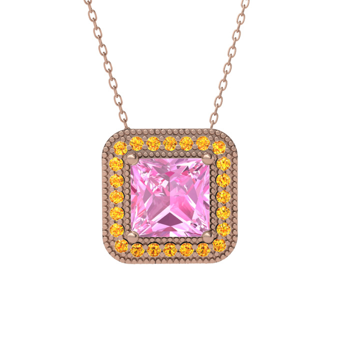 Pembe kuvars ve sitrin 8 ayar rose altın kolye (40 cm rose altın rolo zincir)