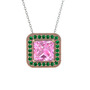 Pembe kuvars ve yeşil kuvars 14 ayar rose altın kolye (40 cm beyaz altın rolo zincir)