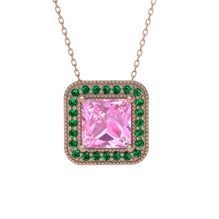 Pembe kuvars ve yeşil kuvars 18 ayar rose altın kolye (40 cm rose altın rolo zincir)