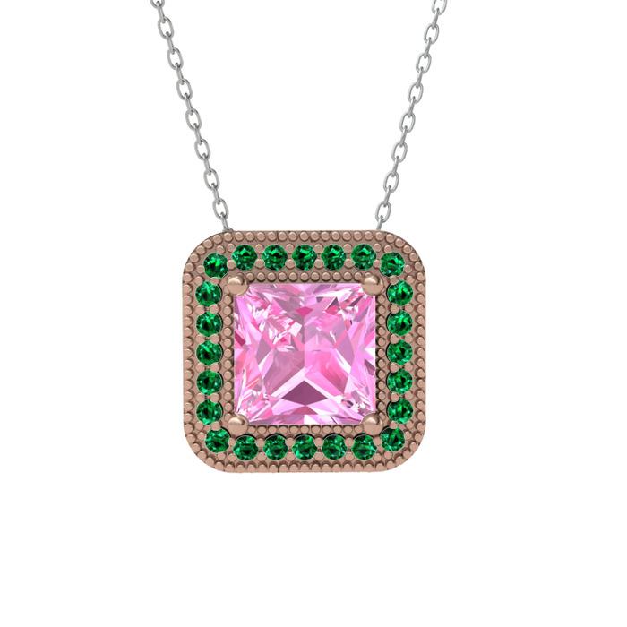 Pembe kuvars ve yeşil kuvars 8 ayar rose altın kolye (40 cm beyaz altın rolo zincir)