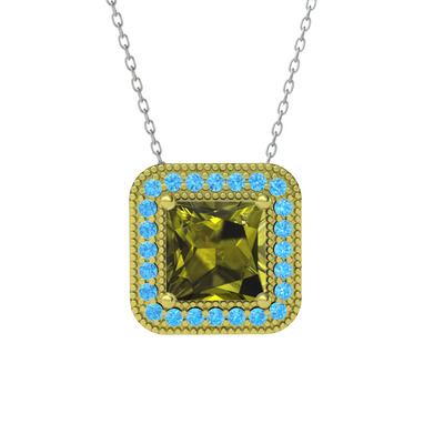 Peridot ve akuamarin 18 ayar altın kolye (40 cm gümüş rolo zincir)