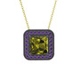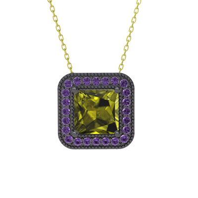 Peridot ve ametist 925 ayar siyah rodyum kaplama gümüş kolye (40 cm altın rolo zincir)