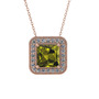Peridot ve beyaz zirkon 8 ayar rose altın kolye (40 cm rose altın rolo zincir)
