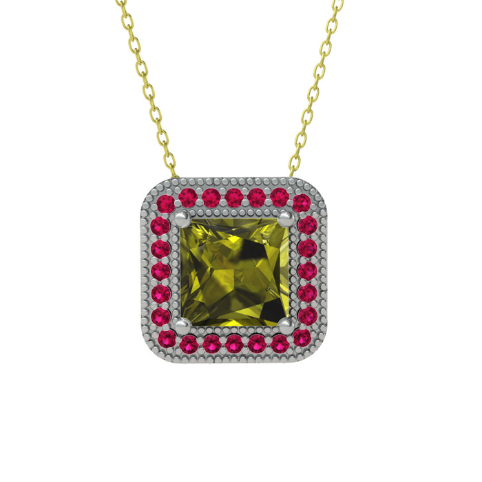 Peridot ve rodolit garnet 14 ayar beyaz altın kolye (40 cm gümüş rolo zincir)