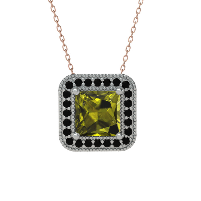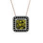 Peridot ve siyah zirkon 18 ayar beyaz altın kolye (40 cm rose altın rolo zincir)