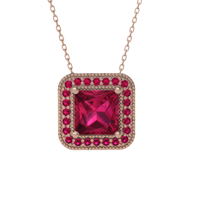 Rodolit garnet 18 ayar rose altın kolye (40 cm rose altın rolo zincir)