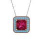 Rodolit garnet ve akuamarin 8 ayar rose altın kolye (40 cm beyaz altın rolo zincir)