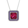 Rodolit garnet ve ametist 18 ayar beyaz altın kolye (40 cm beyaz altın rolo zincir)
