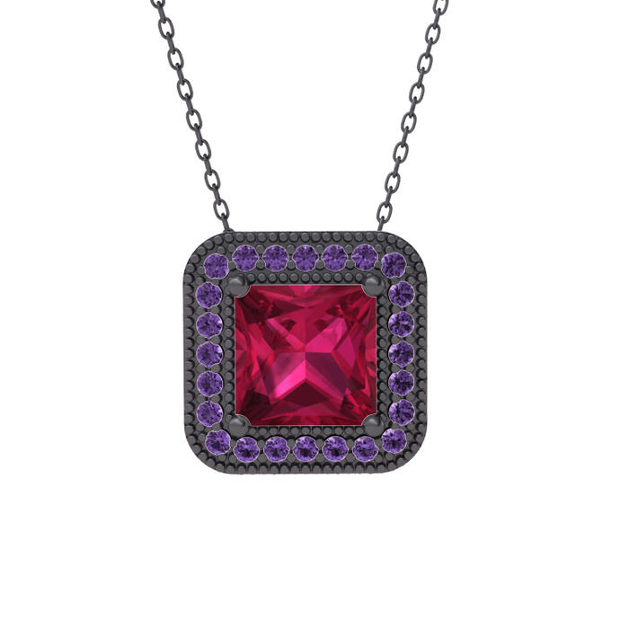 Rodolit garnet ve ametist 925 ayar siyah rodyum kaplama gümüş kolye (40 cm gümüş rolo zincir)