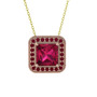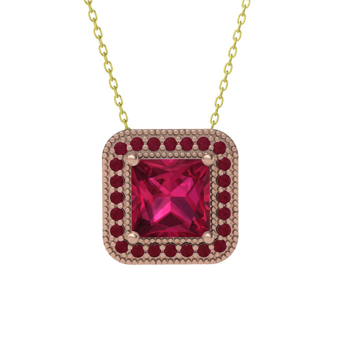 Rodolit garnet ve kök yakut 18 ayar rose altın kolye (40 cm altın rolo zincir)