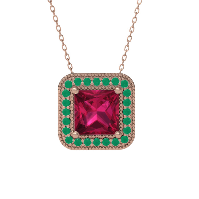 Rodolit garnet ve kök zümrüt 18 ayar rose altın kolye (40 cm rose altın rolo zincir)