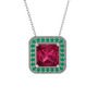 Rodolit garnet ve kök zümrüt 8 ayar beyaz altın kolye (40 cm beyaz altın rolo zincir)
