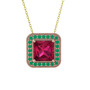 Rodolit garnet ve kök zümrüt 8 ayar rose altın kolye (40 cm altın rolo zincir)