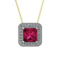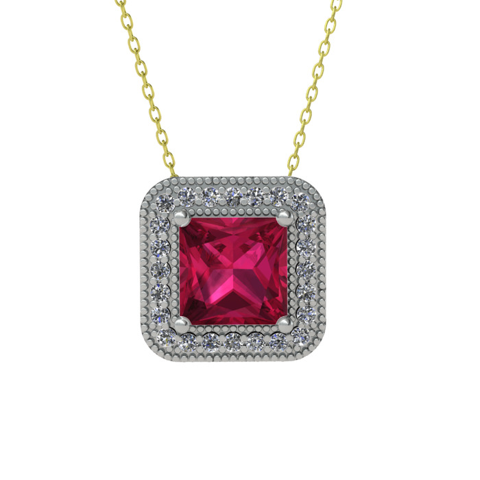 Rodolit garnet ve pırlanta 18 ayar beyaz altın kolye (0.264 karat, 40 cm gümüş rolo zincir)