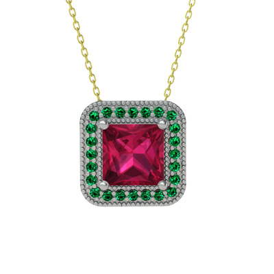 Rodolit garnet ve yeşil kuvars 18 ayar beyaz altın kolye (40 cm gümüş rolo zincir)