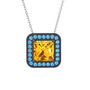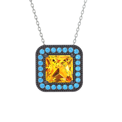 Sitrin ve akuamarin 925 ayar siyah rodyum kaplama gümüş kolye (40 cm beyaz altın rolo zincir)