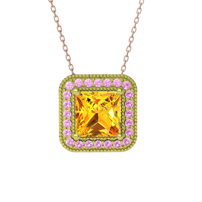 Sitrin ve pembe kuvars 14 ayar altın kolye (40 cm rose altın rolo zincir)