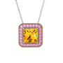 Sitrin ve pembe kuvars 8 ayar rose altın kolye (40 cm beyaz altın rolo zincir)