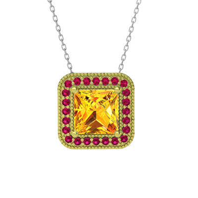Sitrin ve rodolit garnet 14 ayar altın kolye (40 cm beyaz altın rolo zincir)