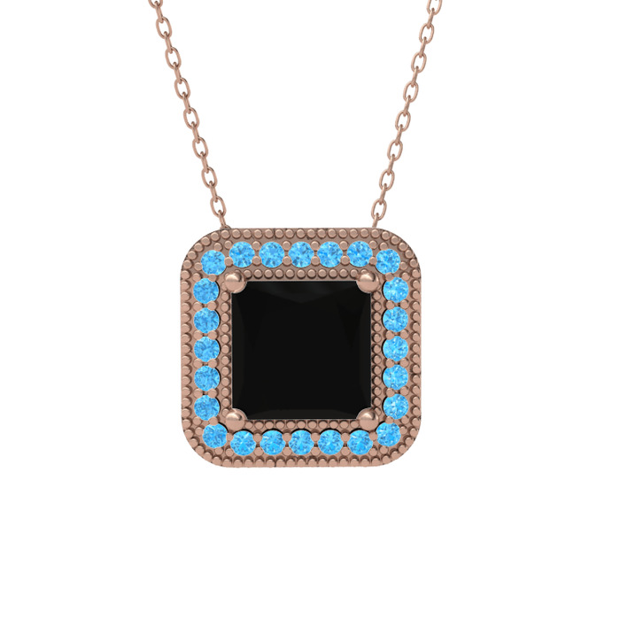 Siyah zirkon ve akuamarin 8 ayar rose altın kolye (40 cm rose altın rolo zincir)