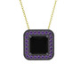 Siyah zirkon ve ametist 925 ayar siyah rodyum kaplama gümüş kolye (40 cm altın rolo zincir)
