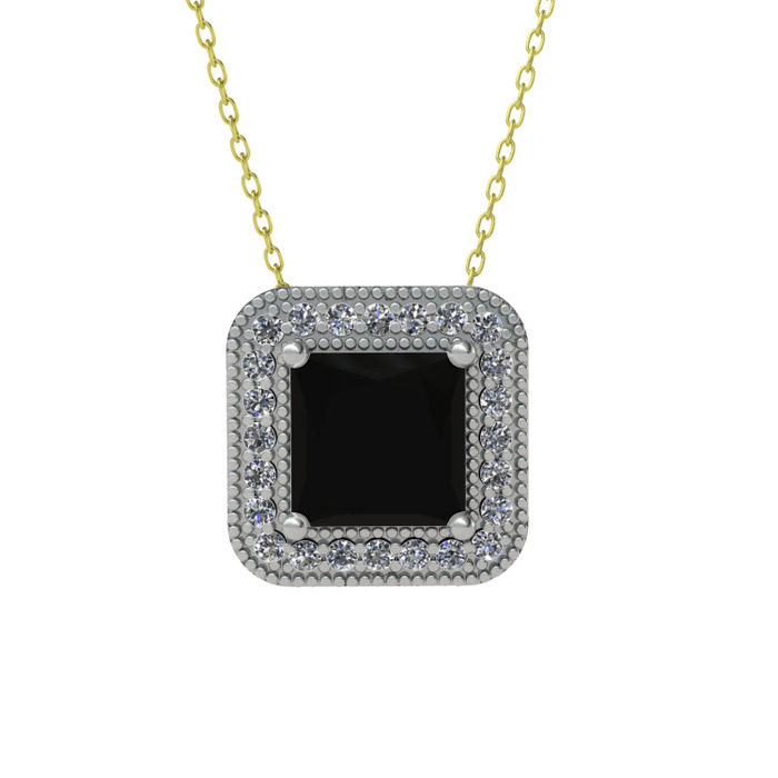 Siyah zirkon ve beyaz zirkon 8 ayar beyaz altın kolye (40 cm gümüş rolo zincir)