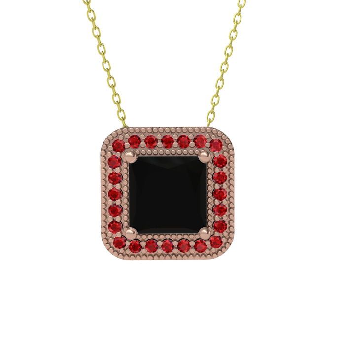 Siyah zirkon ve garnet 925 ayar rose altın kaplama gümüş kolye (40 cm gümüş rolo zincir)