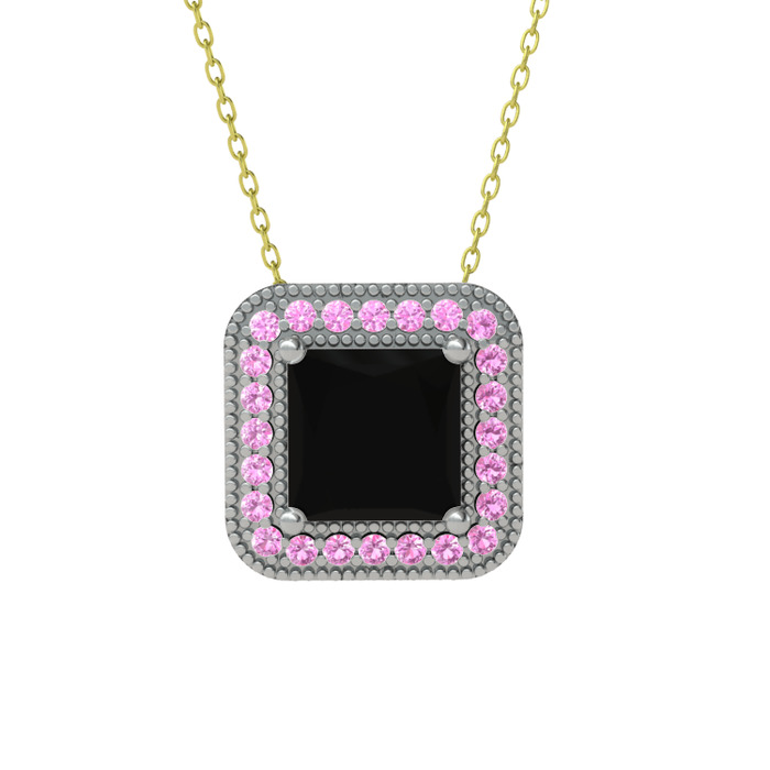Siyah zirkon ve pembe kuvars 925 ayar gümüş kolye (40 cm altın rolo zincir)