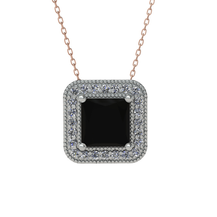 Siyah zirkon ve pırlanta 8 ayar beyaz altın kolye (0.264 karat, 40 cm rose altın rolo zincir)