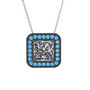 Swarovski ve akuamarin 925 ayar siyah rodyum kaplama gümüş kolye (40 cm beyaz altın rolo zincir)
