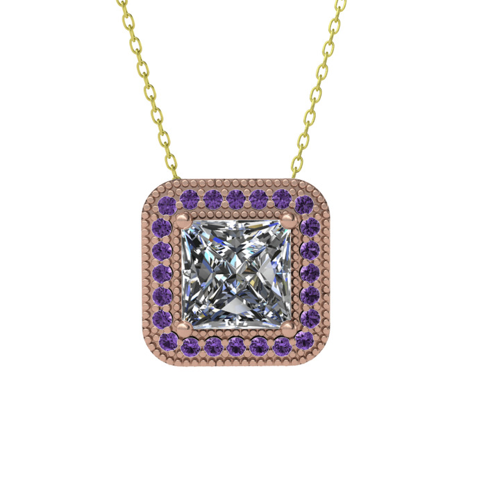 Swarovski ve ametist 8 ayar rose altın kolye (40 cm gümüş rolo zincir)