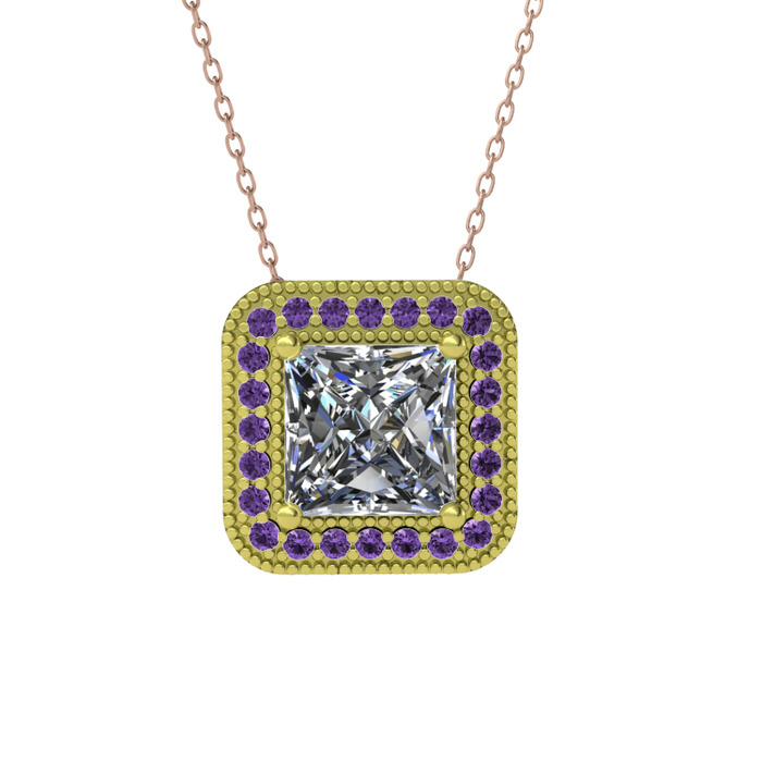 Swarovski ve ametist 925 ayar altın kaplama gümüş kolye (40 cm rose altın rolo zincir)