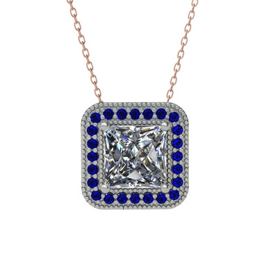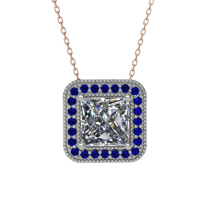 Swarovski ve lab safir 8 ayar beyaz altın kolye (40 cm rose altın rolo zincir)