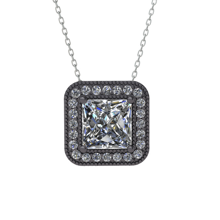 Swarovski ve pırlanta 925 ayar siyah rodyum kaplama gümüş kolye (0.264 karat, 40 cm beyaz altın rolo zincir)