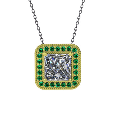 Swarovski ve yeşil kuvars 18 ayar altın kolye (40 cm gümüş rolo zincir)