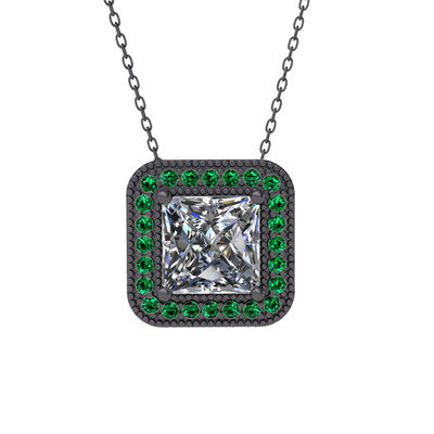 Swarovski ve yeşil kuvars 925 ayar siyah rodyum kaplama gümüş kolye (40 cm gümüş rolo zincir)