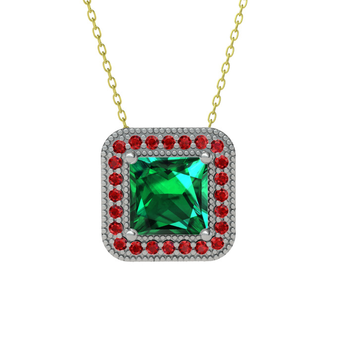 Yeşil kuvars ve garnet 18 ayar beyaz altın kolye (40 cm altın rolo zincir)