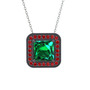 Yeşil kuvars ve garnet 925 ayar siyah rodyum kaplama gümüş kolye (40 cm beyaz altın rolo zincir)