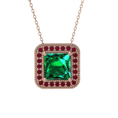 Yeşil kuvars ve kök yakut 8 ayar rose altın kolye (40 cm rose altın rolo zincir)