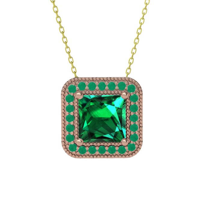 Yeşil kuvars ve kök zümrüt 14 ayar rose altın kolye (40 cm altın rolo zincir)