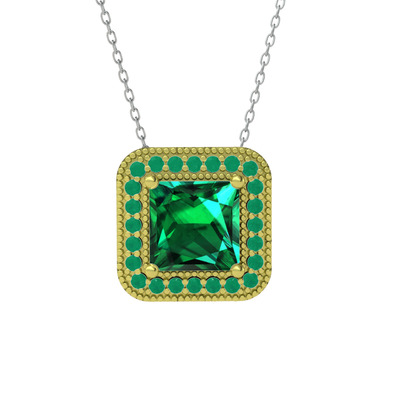 Yeşil kuvars ve kök zümrüt 8 ayar altın kolye (40 cm beyaz altın rolo zincir)