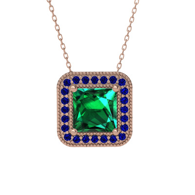 Yeşil kuvars ve lab safir 14 ayar rose altın kolye (40 cm rose altın rolo zincir)