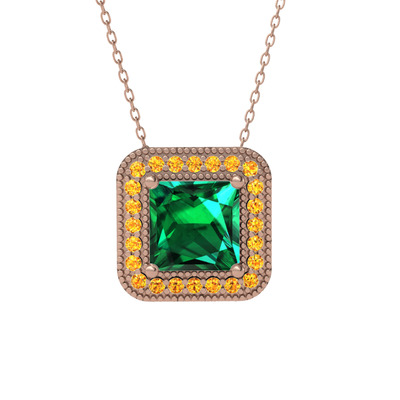 Yeşil kuvars ve sitrin 14 ayar rose altın kolye (40 cm rose altın rolo zincir)