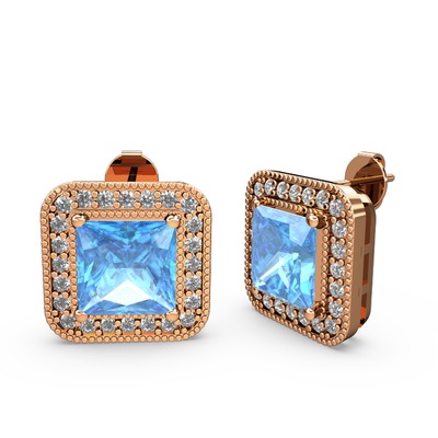 Akuamarin ve beyaz zirkon 8 ayar rose altın küpe