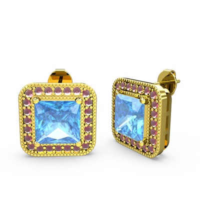 Akuamarin ve kök yakut 14 ayar altın küpe
