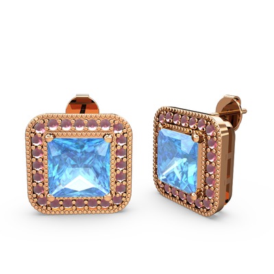 Akuamarin ve kök yakut 14 ayar rose altın küpe