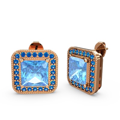 Akuamarin ve lab safir 18 ayar rose altın küpe