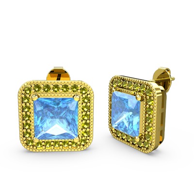 Akuamarin ve peridot 18 ayar altın küpe
