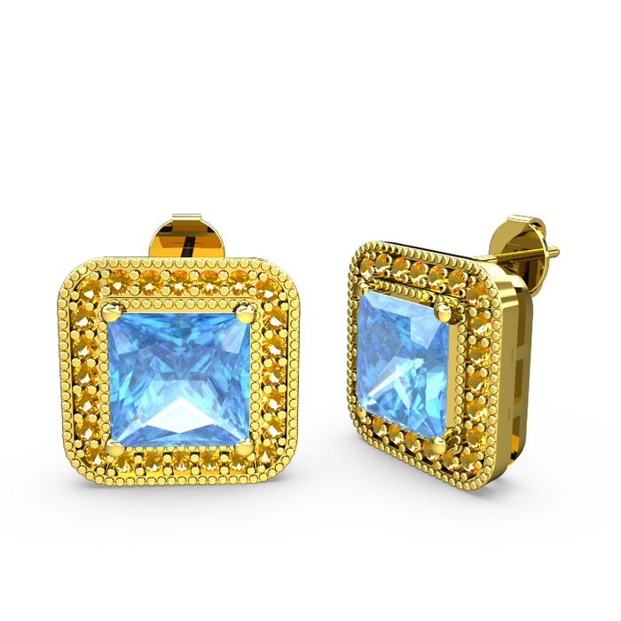 Akuamarin ve sitrin 8 ayar altın küpe