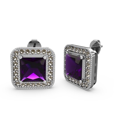 Ametist ve dumanlı kuvars 14 ayar beyaz altın küpe